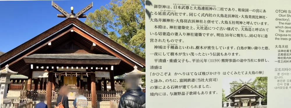 大鳥大社は、日本武尊(やまとたけるのみこと)を主祭神として祀る、とても歴史のある神社。境内にはヤマトタケル像もあり、勇ましい雰囲気と厳かな空気が漂っていました。