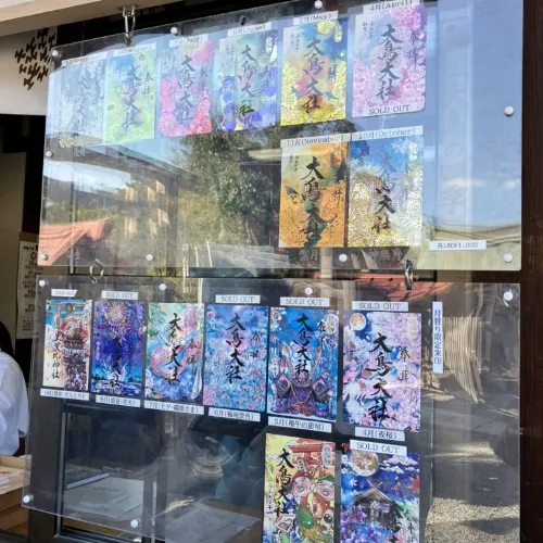 今回、お参りに行く前からネットで目にしていて楽しみにしていたのが御朱印のバリエーションの多さ。通常御朱印に加えて月替り・季節限定のものもあり、私の前に並んでた参拝者の方は月替りの御朱印をコンプしてそうでした。