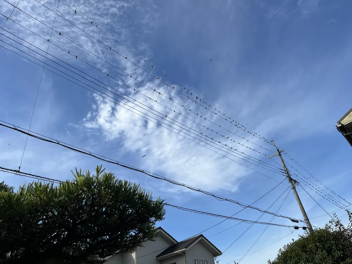 先週土曜朝、わが家の前に伸びる電線にツバメが並んでいました。数百か千以上か。