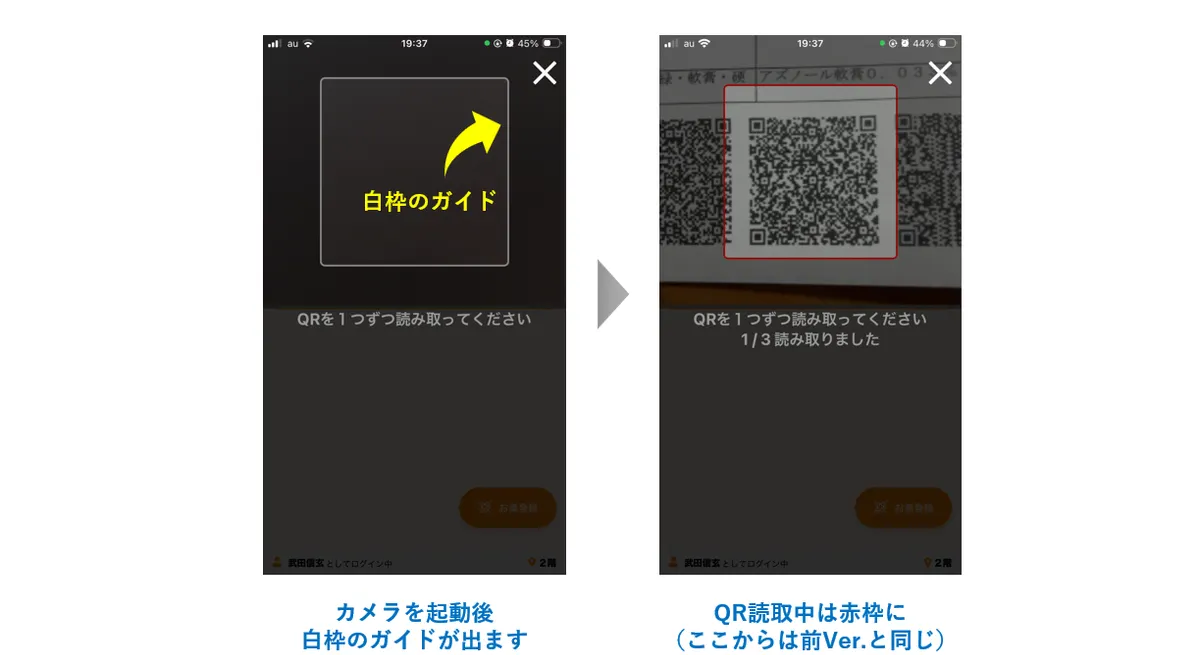 白枠内にQRが映るようにすると読取がしやすくなるよう改善しました。