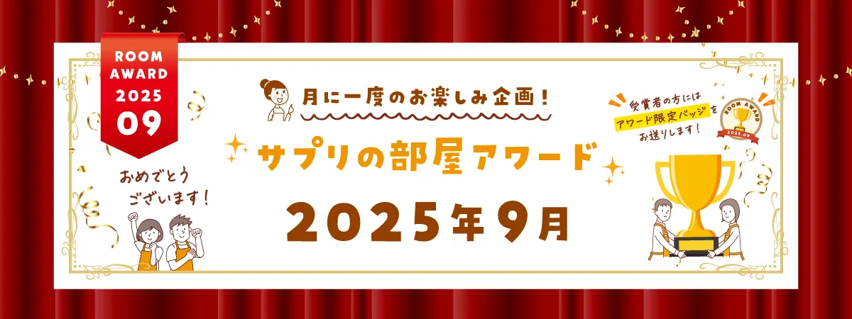 サプリの部屋では、部屋活動を楽しんでくださるユーザーの皆様へ感謝の気持ちを込めて、毎月「サプリの部屋月間アワード」を開催しております!