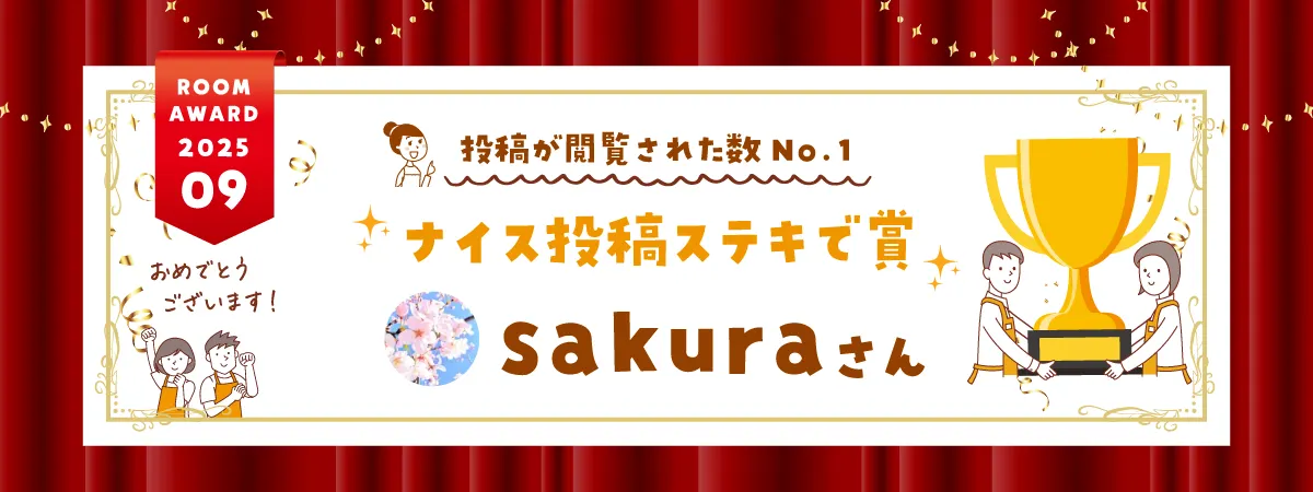 2025年9月のアワード内容も、先月に引き続き、投稿してくださった記事が最もよく閲覧された閲覧数ランキングNo.1のユーザーさんに贈られる「ナイス投稿ステキで賞」、いいねなどでサプリの部屋を最も盛り上げてくださったユーザーさんに贈られる「ベストサポーター賞」の2本です!